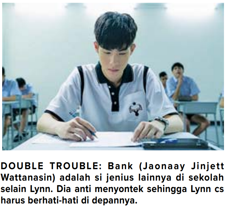 Misalnya, Juné Plearnpichaya Komalarajun yang menjadi Lynn, salah satu siswa paling pintar di sekolah. Dia adalah anggota grup idol BNK48, yakni seperti JKT48 di Indonesia. Bad Genius adalah serial keduanya setelah One Year 365: Wan Ban Chun Ban Tur (2019). Merasa ’’diperas’’ oleh sekolah, Lynn yang berasal dari keluarga menengah akhirnya memberi sontekan ujian dengan imbalan THB 30 ribu per orang. Tujuannya, meringankan beban ayahnya yang harus berutang untuk menyekolahkan Lynn di sana.