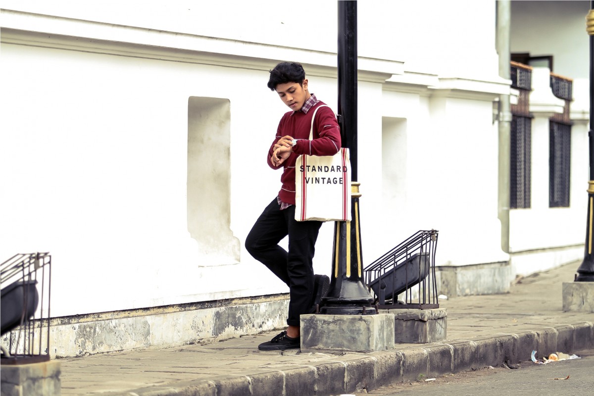 Preppy look cocok buat kalian yang mau tampil sedikit nerd tapi tetap fashionable. Keluarkan sweater favoritmu dari lemarimu. Biar nggak terkesan monoton, bisa gunakan kemeja flanel di dalam sweater. Padukan dengan bawahan berwarna senada. Tips nih, biar nggak terkesan oldies, celana jeans bisa jadi pilihan pas. For final touch, kenakan sepatu sneakers. That will fit perfectly for you, bro!